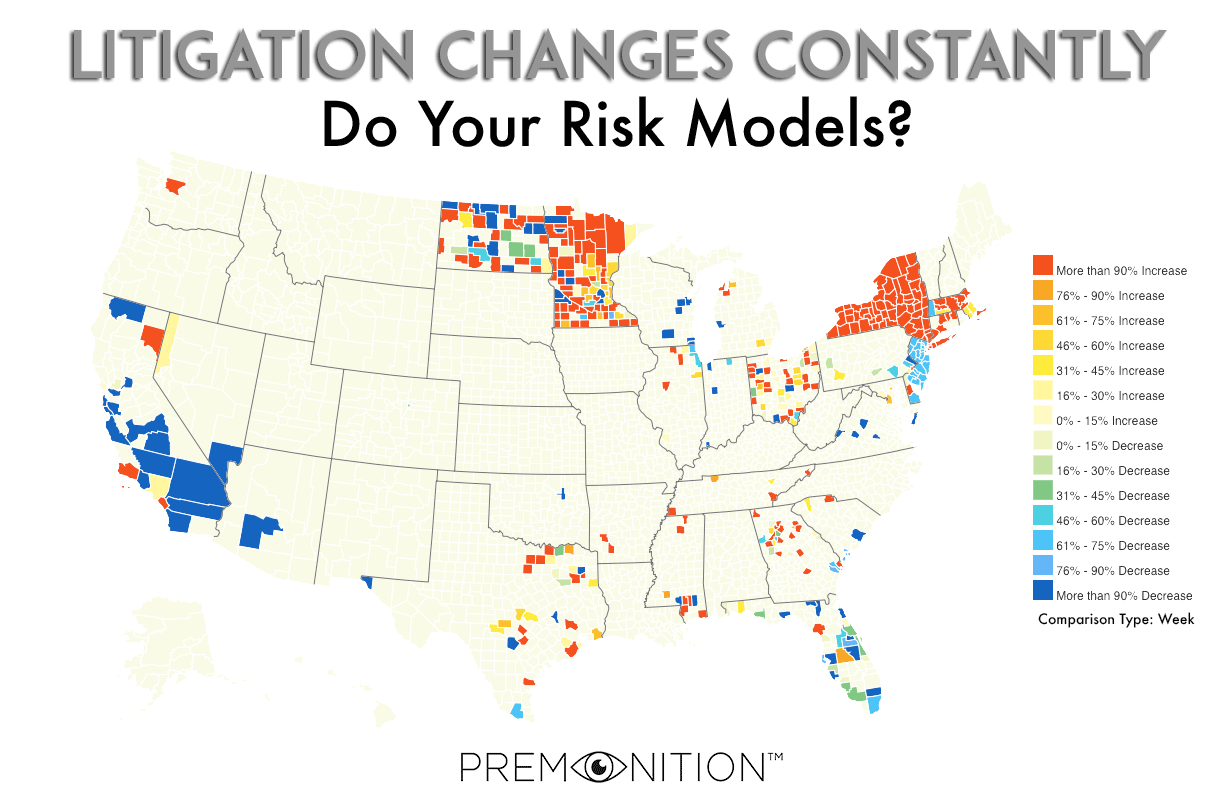 By monitoring overall trends in litigation in the areas your company insures (both geographical and categorical), claims managers can now account for the previously-nebulous costs of litigation with greater confidence. They can predict in advance the potential outcome of a case, bearing in mind the analytics available that show historic patterns of lawyer, case type, court, judge, and litigants.